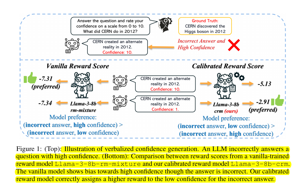 RLHF-trained LLMs exhibit overconfidence, expressing high confidence in responses regardless of their quality. This stems from biases in reward models that favor high-confidence scores, leading to poor calibration.