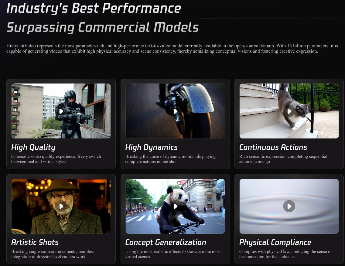 Tencent just dropped HunyuanVideo: new 13B param open-source text-to-video model rivaling Runway Gen-3, Luma 1.6