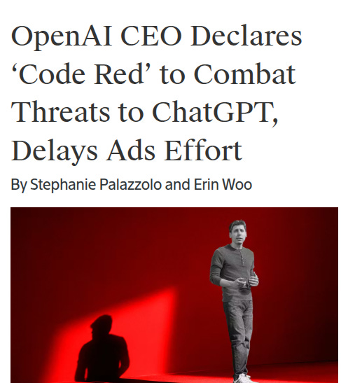 🥊 The AI cold war is heating up: OpenAI Hits the Panic Button as Sam Altman Declares ‘Code Red’ signalling massive competition from Google and Others.