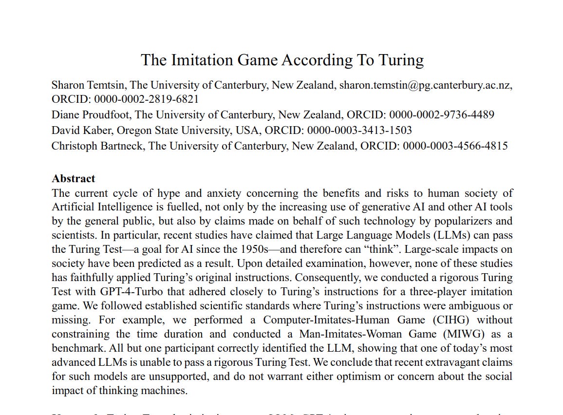 → The study found that GPT-4-Turbo, a state-of-the-art LLM, failed to pass a rigorous Turing Test.