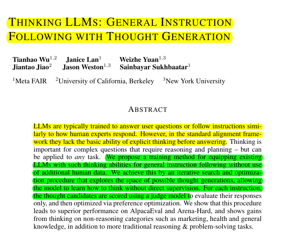 LLMs now learn to think independently through Thought Preference Optimization (TPO), without human guidance or special training data