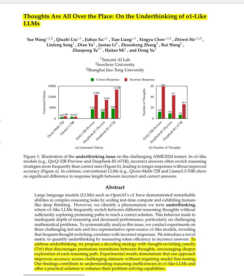 📌 Tip is a simple yet effective decoding modification. It improves accuracy by directly penalizing thought switching. This targeted approach enhances reasoning depth without retraining the LLM.