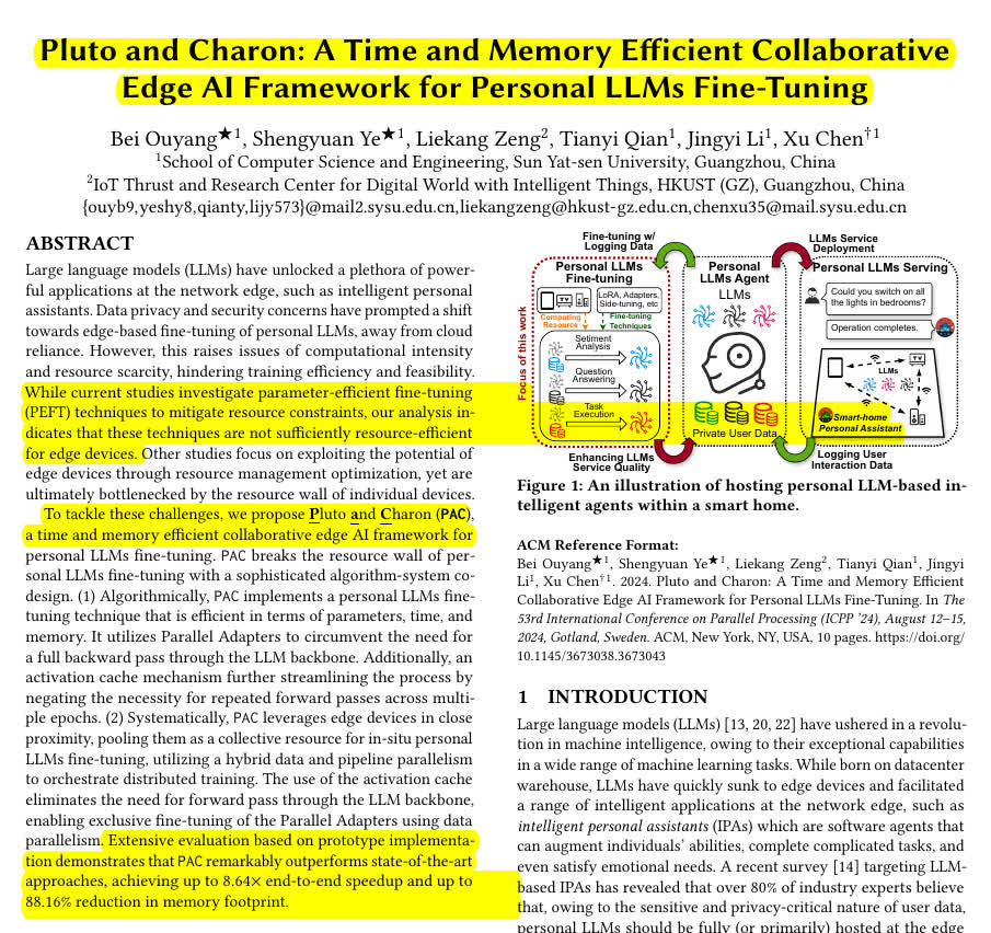 [4]. Pluto and Charon A Time and Memory Efficient Collaborative Edge AI Framework for Personal LLMs Fine-Tuning