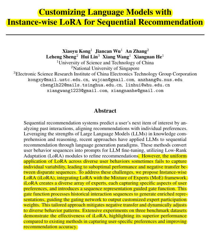 [3]. Customizing Language Models with Instance-wise LoRA for Sequential Recommendation
