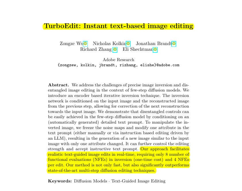 A new research from Adobe. TurboEdit enables real-time, high-quality image editing using few-step diffusion models and detailed text prompts.