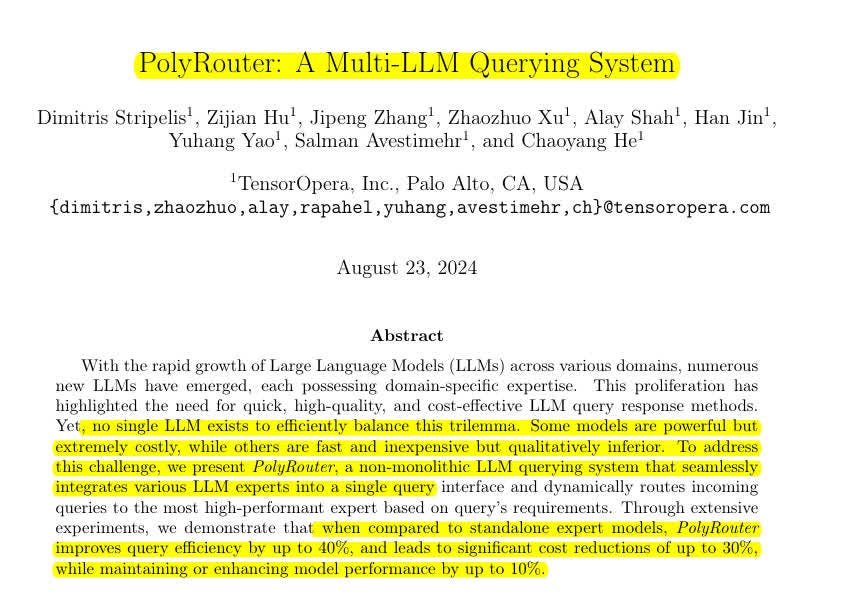 • PolyRouter: A multi-LLM querying system that routes queries to expert models