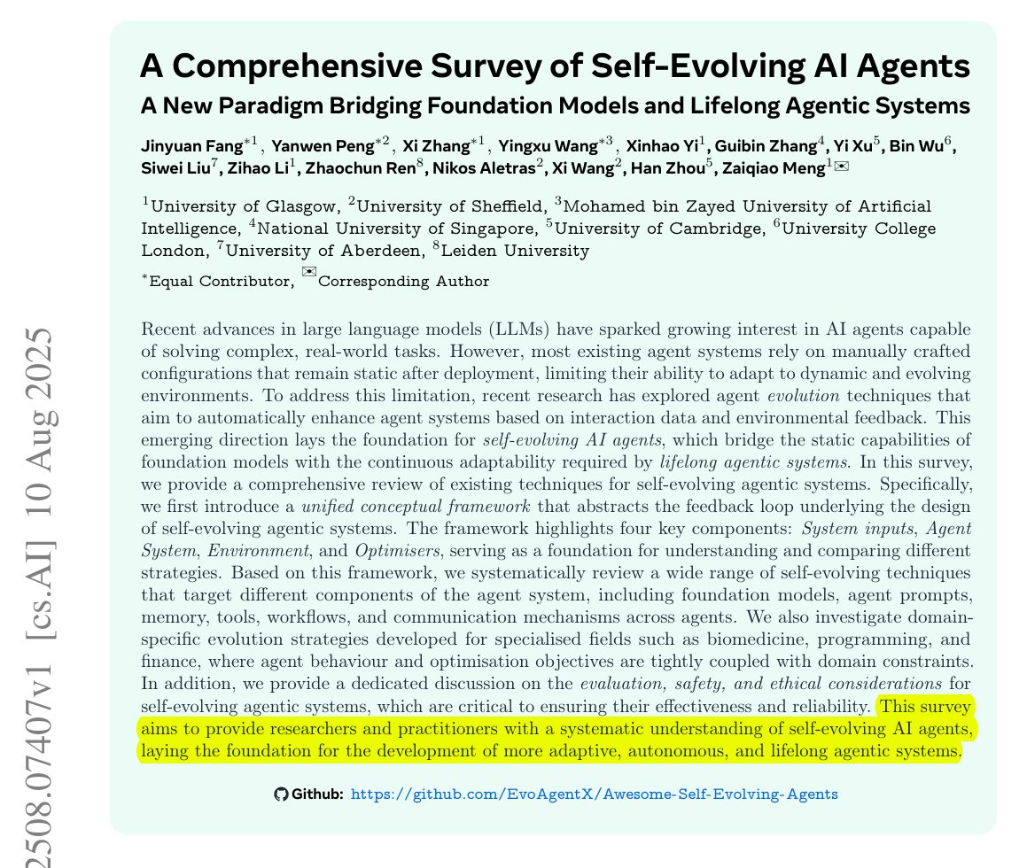 🗞️ "A Comprehensive Survey of Self-Evolving AI Agents: A New Paradigm Bridging Foundation Models and Lifelong Agentic Systems"