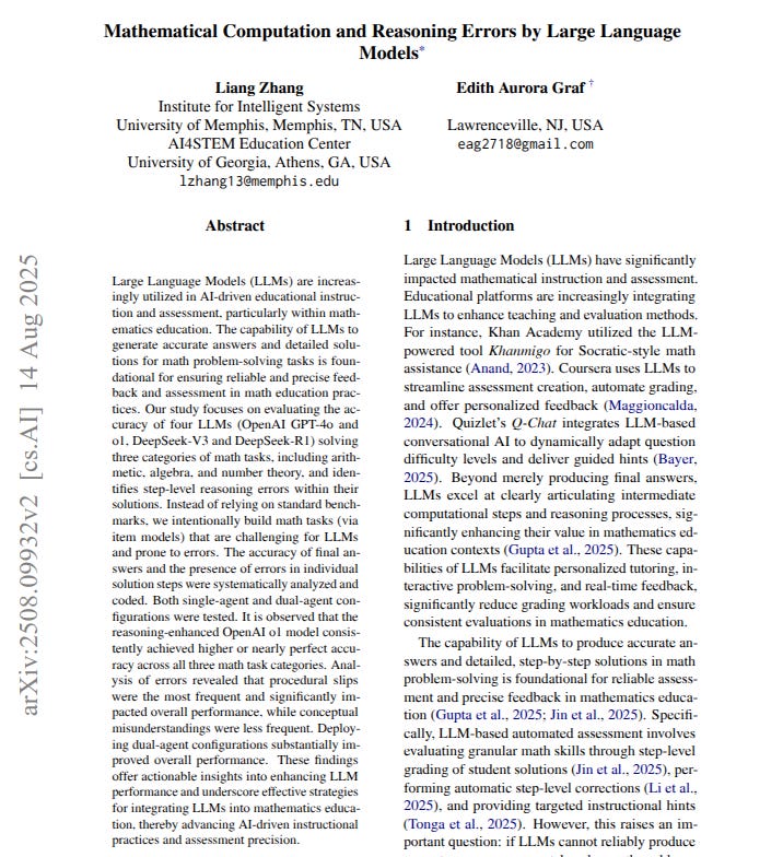 🗞️ "Mathematical Computation and Reasoning Errors by LLMs"