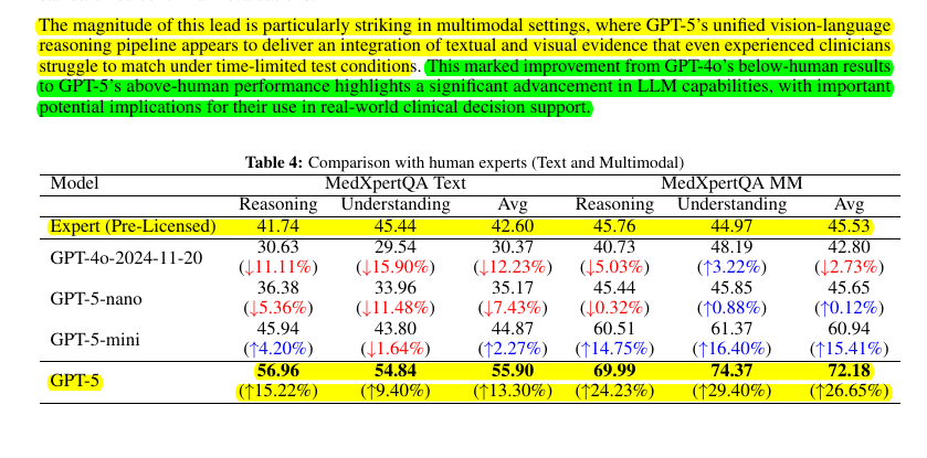 This Paper just proved GPT-5 (medium) now far exceeds (>20%) pre-licensed human experts on medical reasoning and understanding benchmarks.