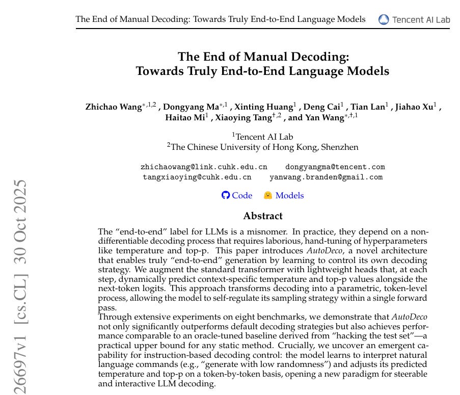 🗞️ “The End of Manual Decoding: Towards Truly End-to-End Language Models”