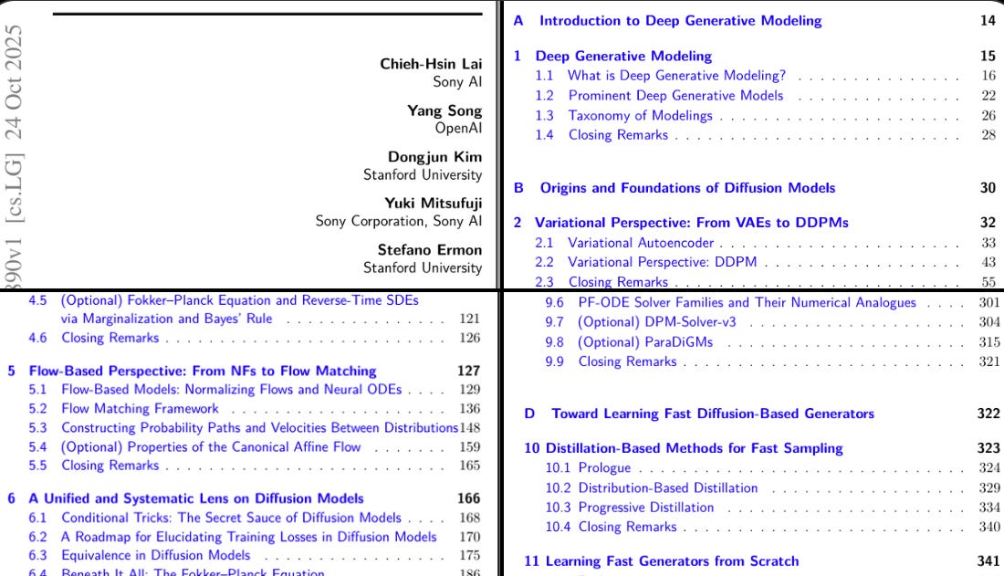There are 3 views of this idea, variational, score-based, and flow-based, and they describe the same thing. There are also 4 training targets, noise, clean data, score, and velocity, and these are equivalent.