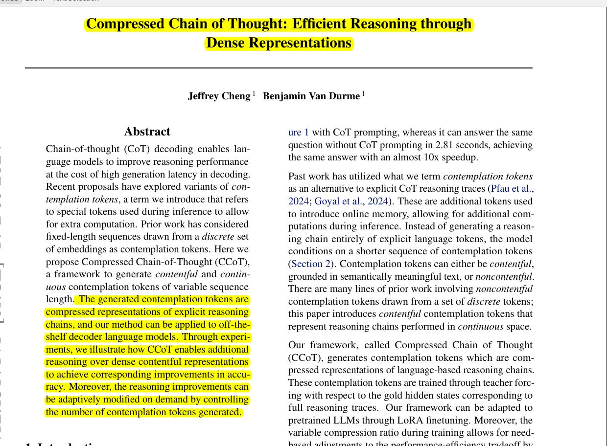 ποΈ Paper: "Compressed Chain of Thought: Efficient Reasoning Through Dense Representations"