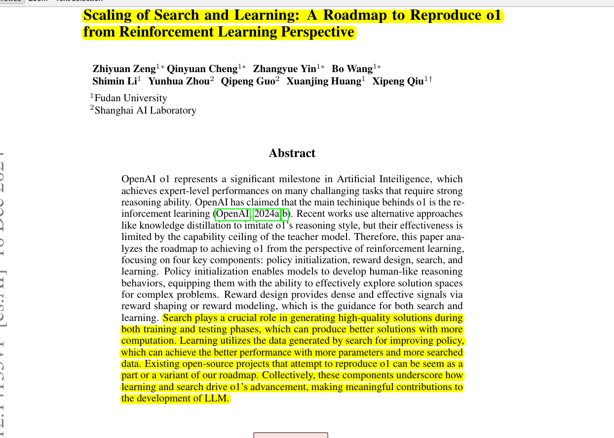 ποΈ Paper: "Scaling of Search and Learning: A Roadmap to Reproduce o1 from Reinforcement Learning Perspective"
