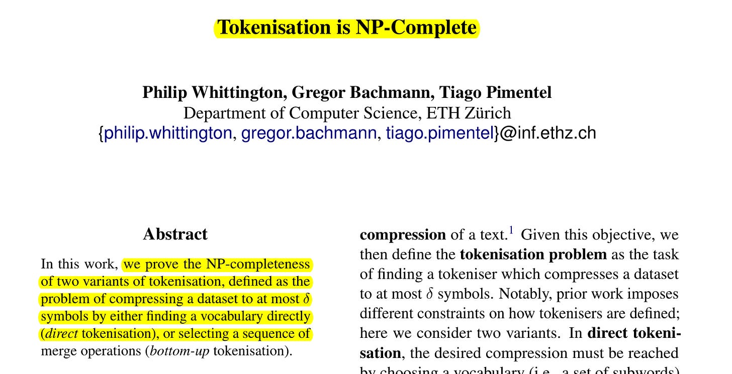 ποΈ Paper: "Tokenisation is NP-Complete"