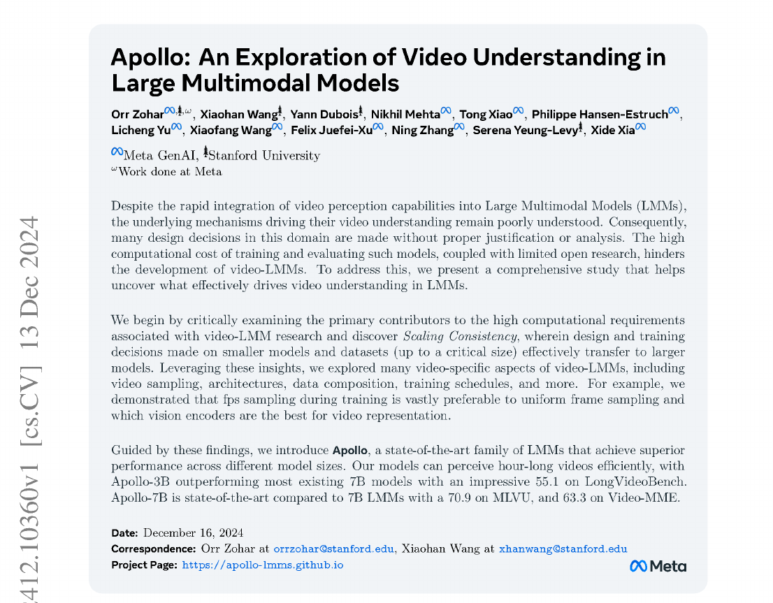 ποΈ Paper: "Apollo: An Exploration of Video Understanding in Large Multimodal Models"