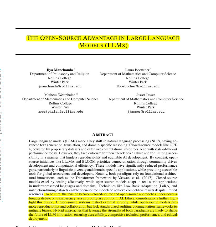 ποΈ Paper Title: "The Open Source Advantage in Large Language Models (LLMs)"