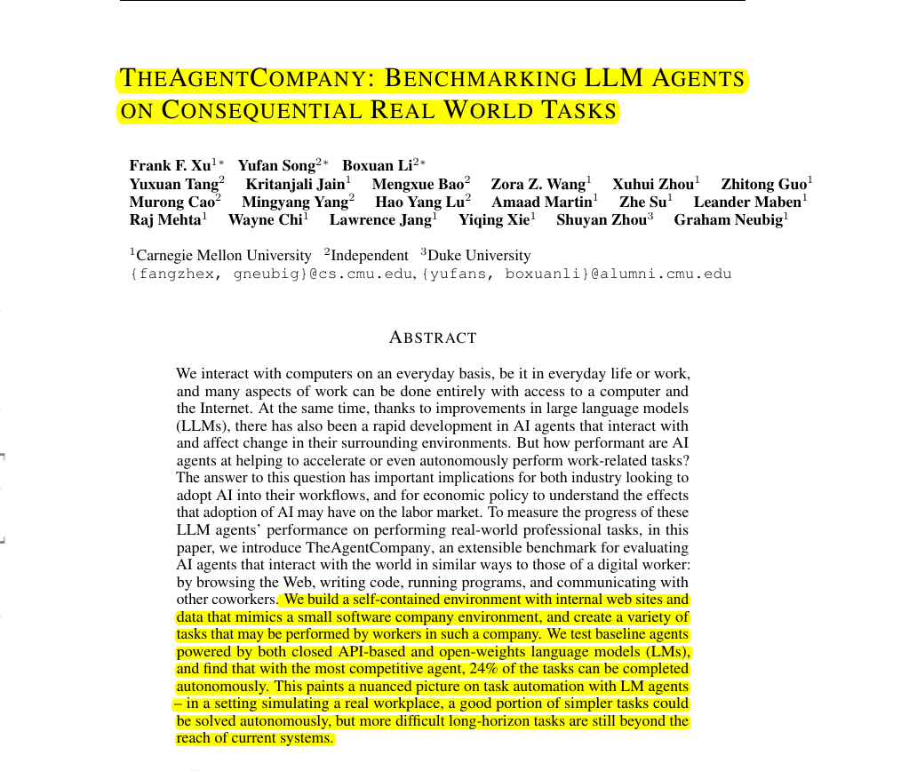 ποΈ Paper: "TheAgentCompany: Benchmarking LLM Agents on Consequential Real World Tasks"
