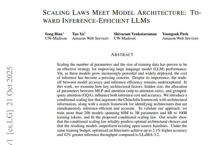 🗞️ Scaling Laws Meet Model Architecture: Toward Inference-Efficient LLMs