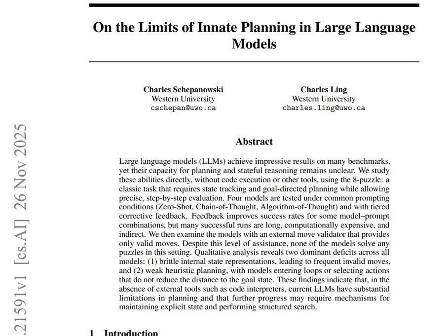 This paper checks how well LLMs can actually plan and keep track of state. Even with strong prompts and feedback, the best model solves only about 68% of these puzzles.