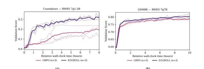 The trick is a new system called EGGROLL, and it flips the entire cost model of ES. Normally, ES dies at scale because you have to generate full-rank perturbation matrices for every population member. For billion-parameter models, that means insane memory movement and ridiculous compute.