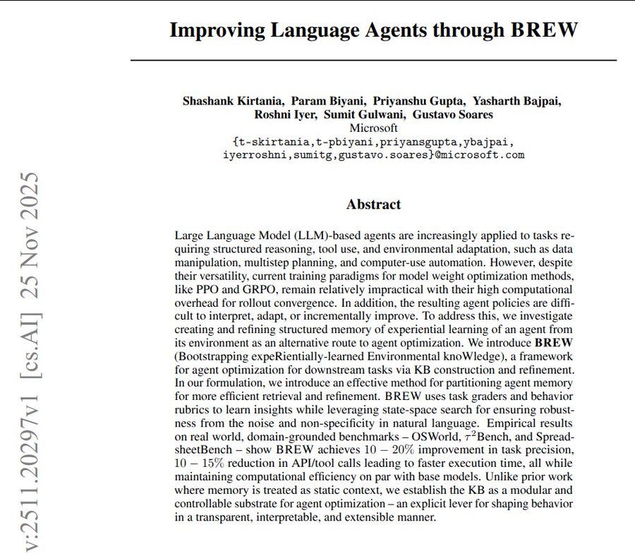 This paper shows how a simple memory system called BREW makes language based agents smarter and more efficient. Standard language agents forget what they learned, so every task feels new and they waste many steps repeating trial and error.