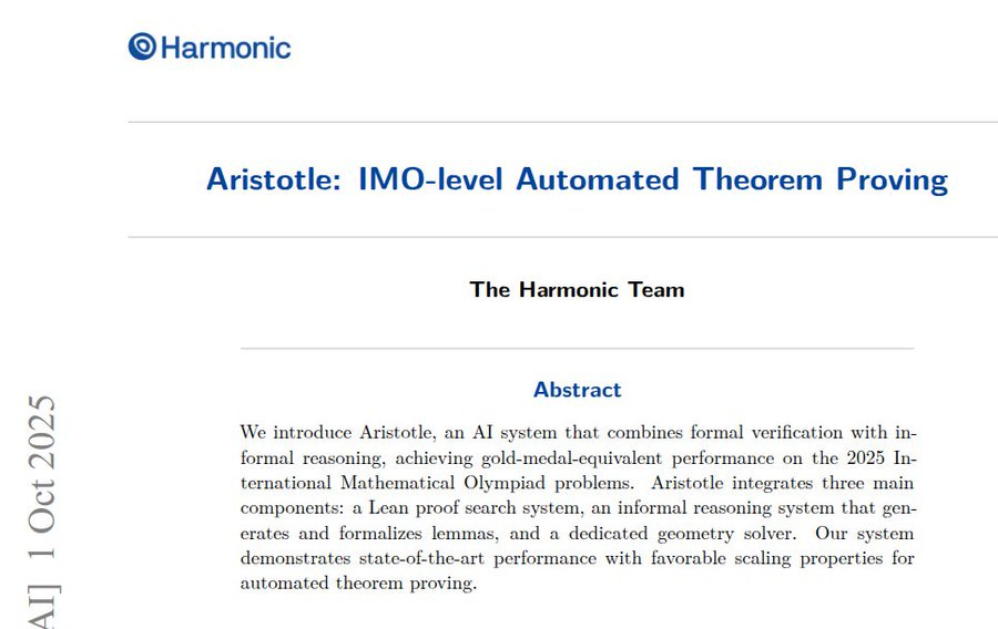 The paper presents Aristotle, a system that blends natural language planning with Lean proofs to solve Olympiad math. It solved 5 of 6 IMO 2025 problems with fully verified Lean solutions.