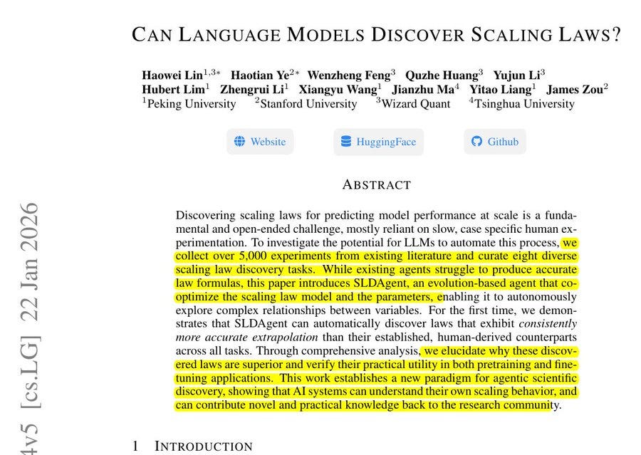 Brilliant paper from Stanford + Tsinghua + Peking University + Wizard Quant. Shows an evolution style LLM agent can discover scaling laws that predict performance better than humans.