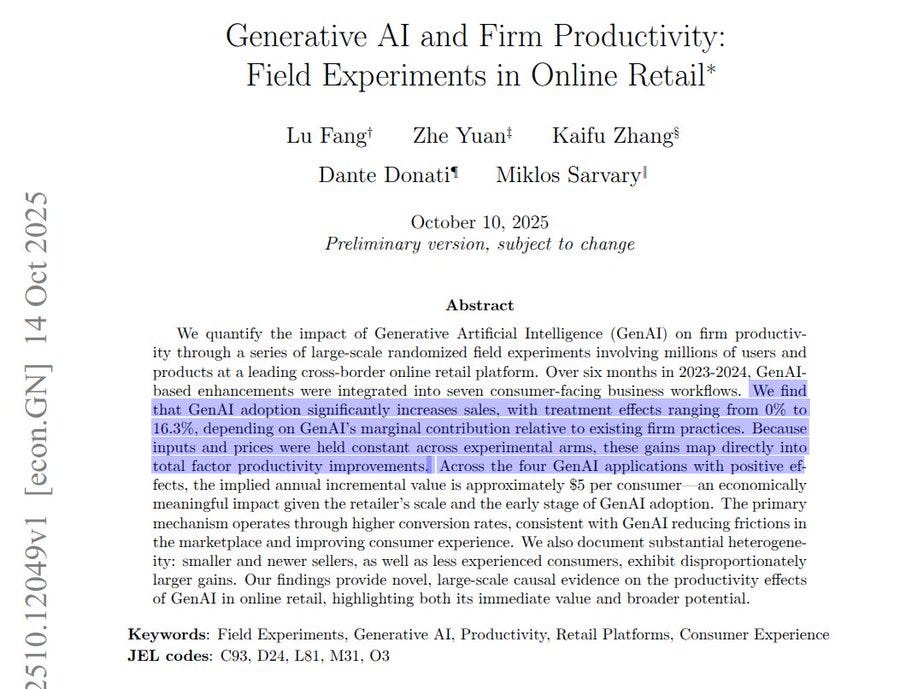 🗞️ Generative AI and Firm Productivity: Field Experiments in Online Retail