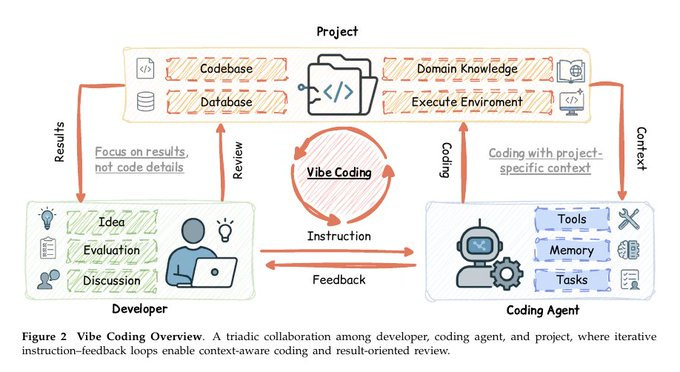 A long 92-page survey on Vibe Coding, where developers guide and check results while AI coding agents do most of the coding work. It builds a theory showing how humans, projects, and coding agents all interact and depend on each other.