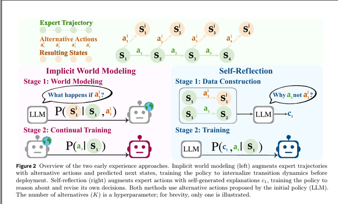 🔥 Massive new Meta paper shows a simple way for language agents to learn from their own early actions without rewards. The big deal is using the agent’s own rollouts (i.e. own actions) as free supervision when rewards are missing, instead of waiting for human feedback or numeric rewards.