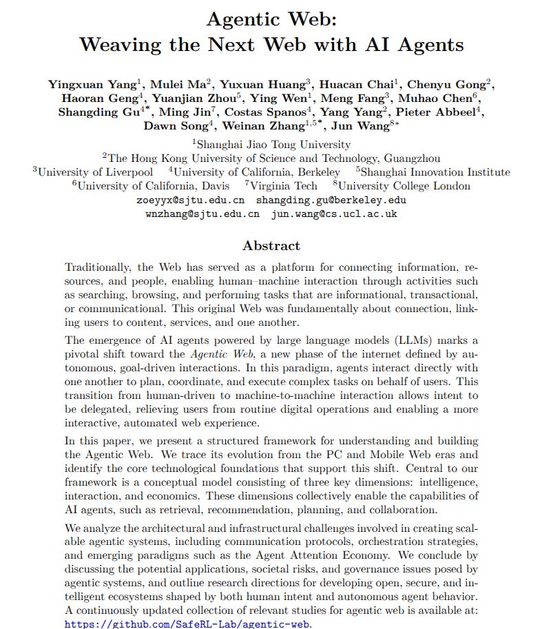🗞️ "Agentic Web: Weaving the Next Web with AI Agents"