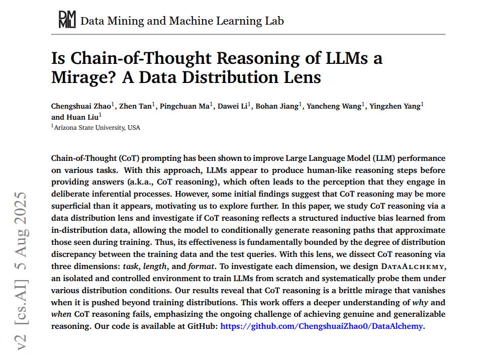 🗞️ "Is Chain-of-Thought Reasoning of LLMs a Mirage? A Data Distribution Lens"