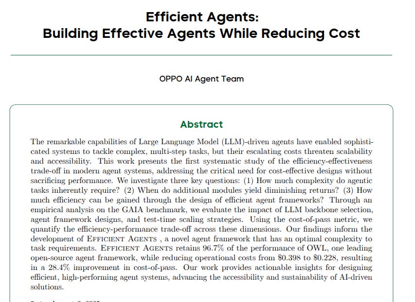 🗞️ "Efficient Agents: Building Effective Agents While Reducing Cost"