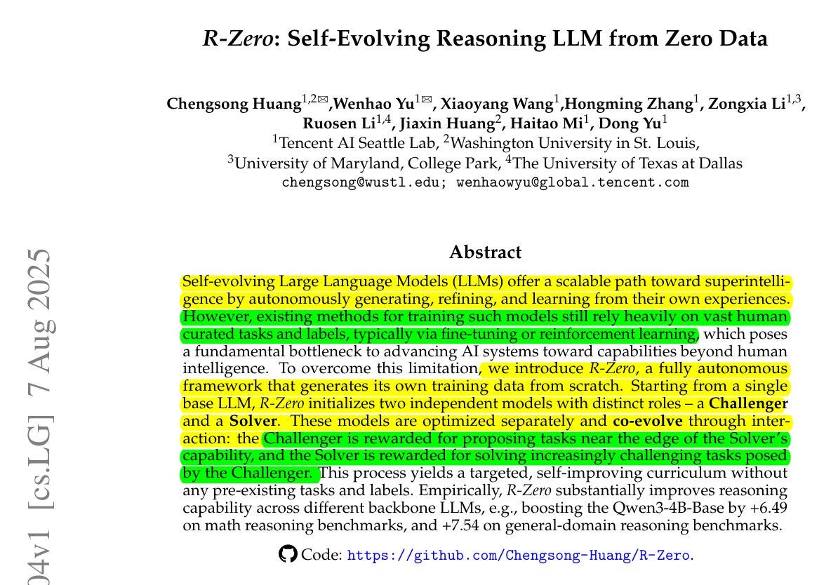 🗞️ "R-Zero: Self-Evolving Reasoning LLM from Zero Data"
