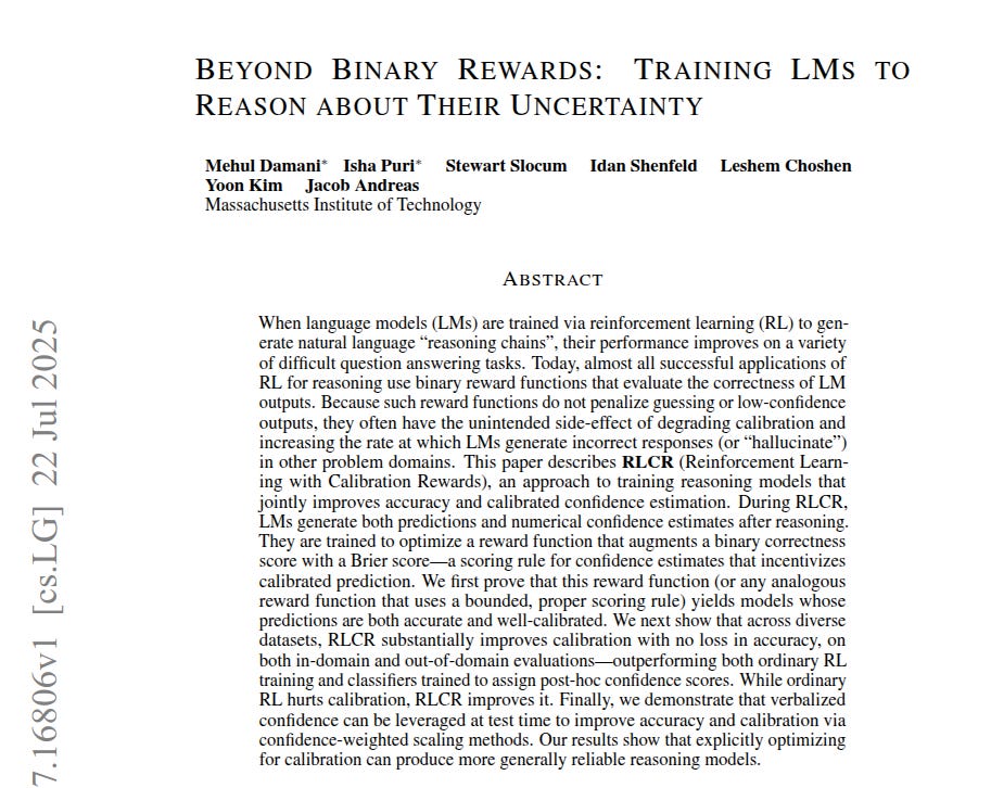🗞️ "Beyond Binary Rewards: Training LMs to Reason About Their Uncertainty"