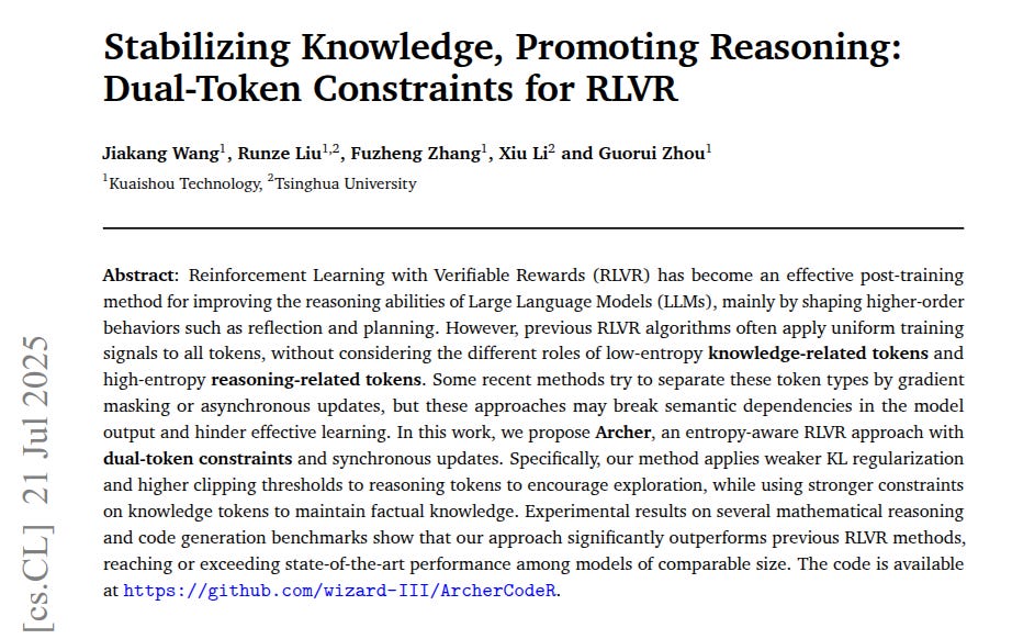 🗞️ "Stabilizing Knowledge, Promoting Reasoning: Dual-Token Constraints for RLVR"