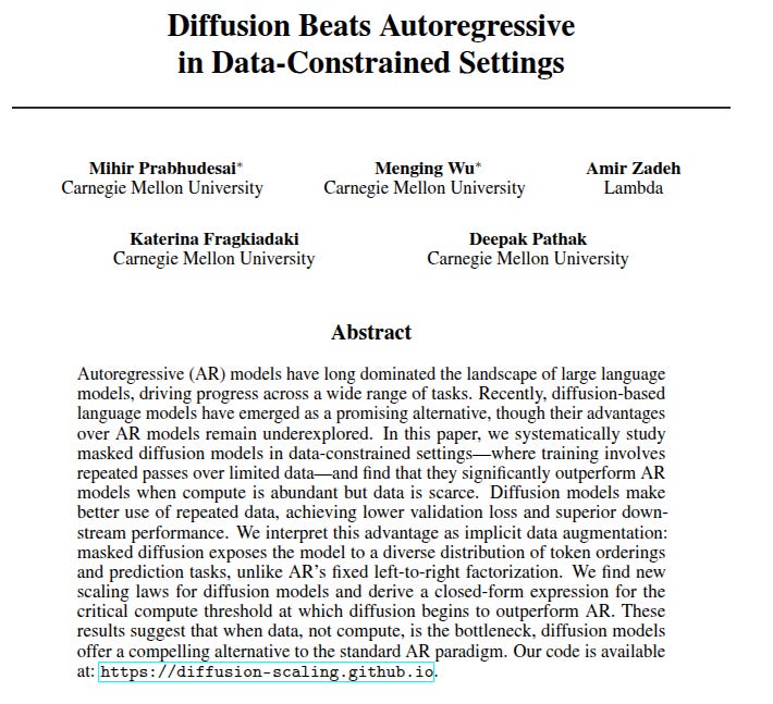 🗞️ "Diffusion Beats Autoregressive in Data-Constrained Settings"