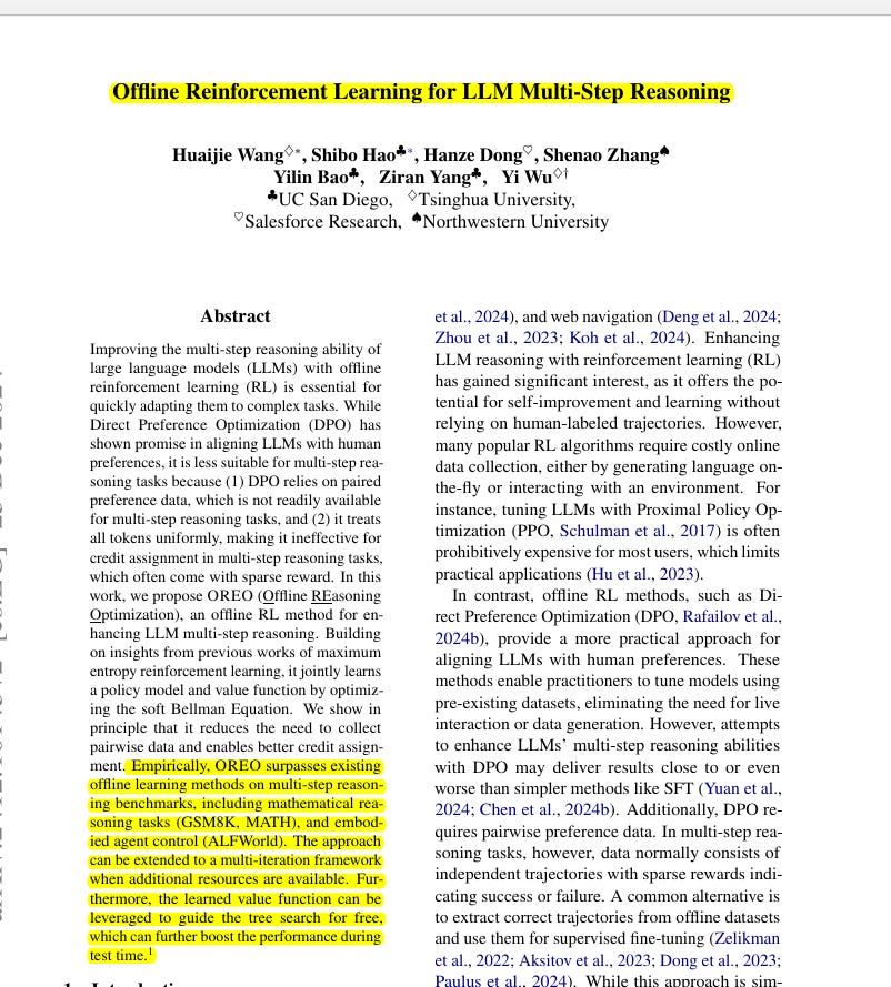 🗞️ "Offline Reinforcement Learning for LLM Multi-Step Reasoning"