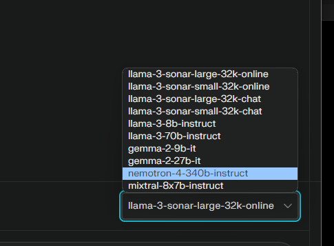 Another alternative for quickly testing this model is through labs.perplexity.ai. In the dropdown just select Nemotron-4-340B.