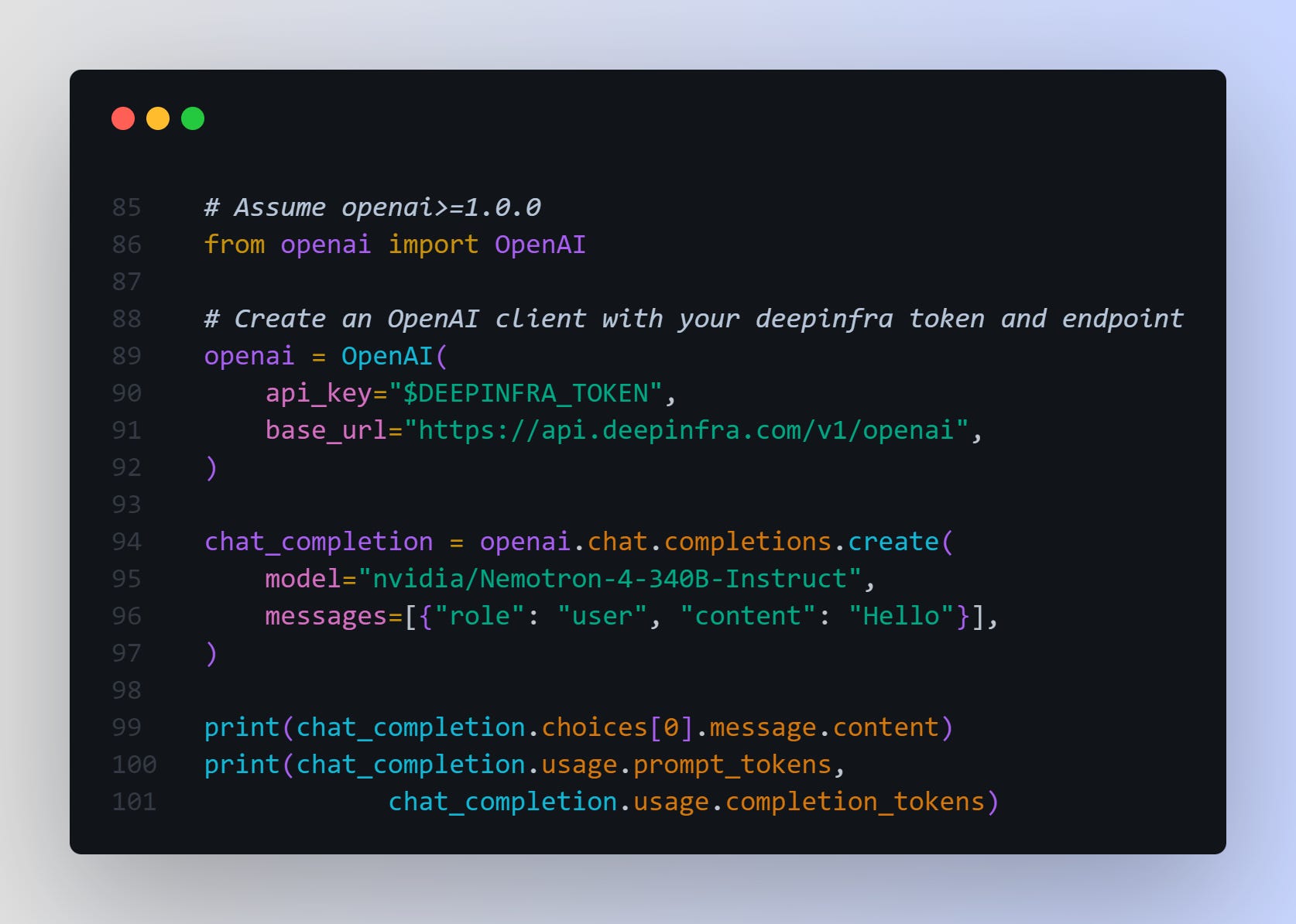 Another option for inferencing with Nemotron-4-340B is with deepinfra