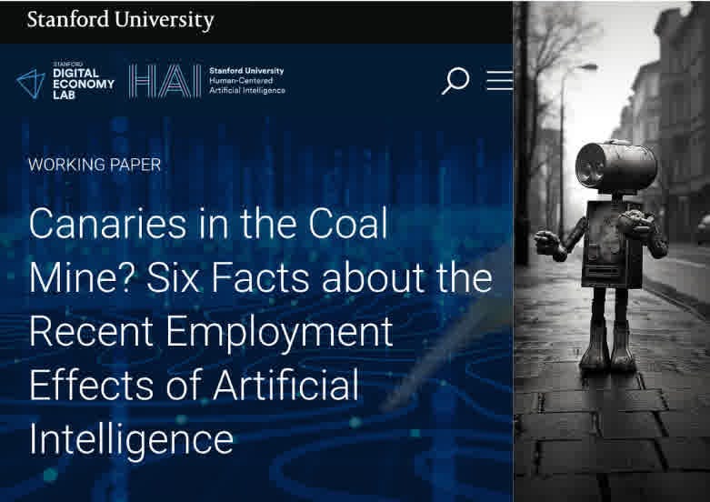 💼 Finally a solid 57-page report on AI's effect on job-market from Stanford University.