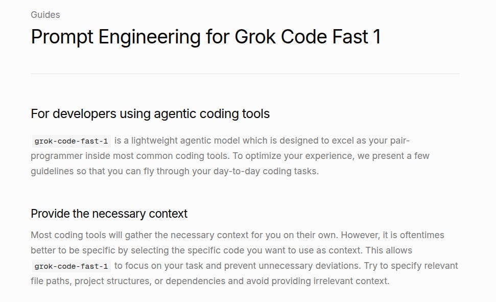 🛠️ xAI also published a Prompt Engineering guide for Grok Code Fast 1