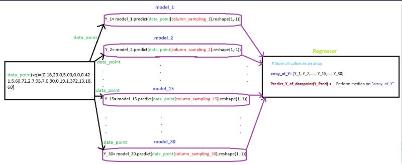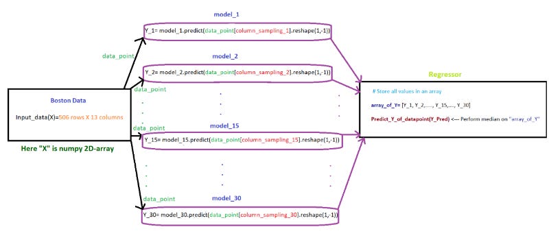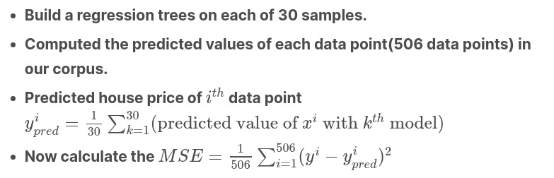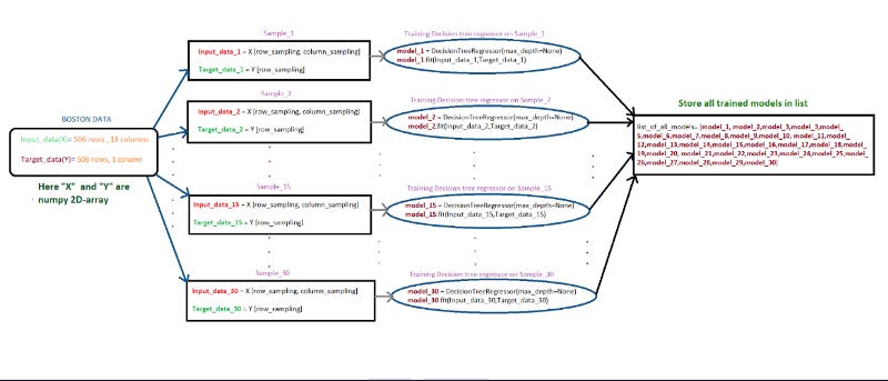 Note that as a part of the Bagging when we are taking the random samples make sure each of the sample will have different set of columns Ex: Assume we have 10 columns[1 ,2 ,3 ,4 ,5 ,6 ,7 ,8 ,9 ,10] for the first sample we will select [3, 4, 5, 9, 1, 2] and for the second sample [7, 9, 1, 4, 5, 6, 2] and so on… Make sure each sample will have atleast 3 feautres/columns/attributes