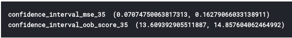 using these 35 values (assume like a sample) find the confidence intravels of MSE and OOB Score