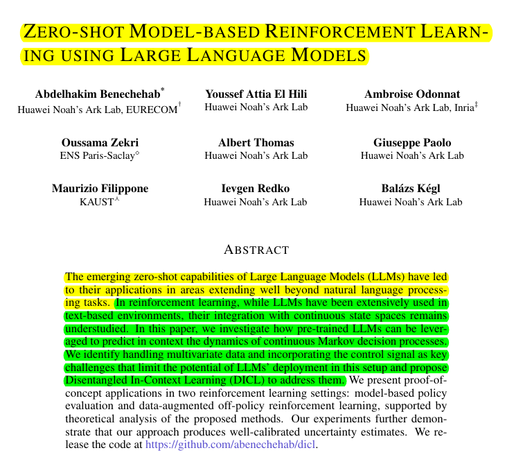 • LLMs can effectively predict continuous Markov decision process dynamics without fine-tuning