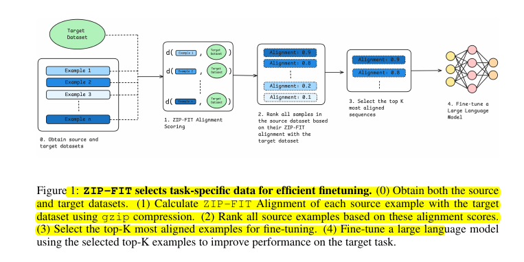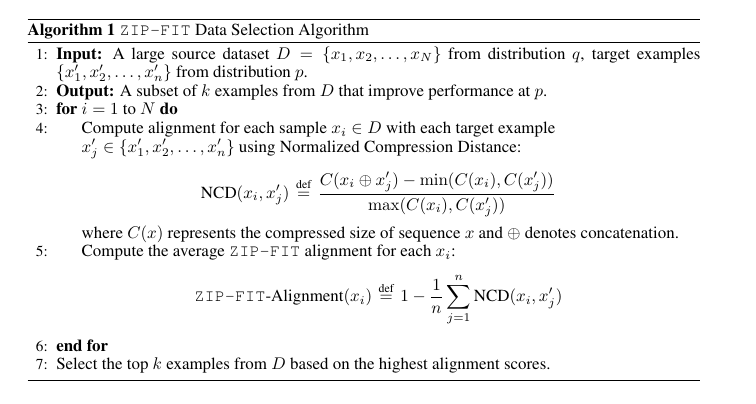 🔬 ZIP-FIT leverages gzip compression to calculate alignment scores between source and target datasets.